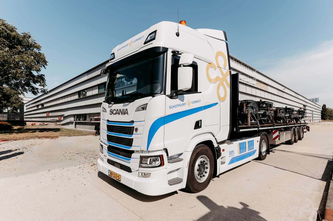 Schotpoort Connect uit Eerbeek heeft zijn eerste volledig elektrische Scania in gebruik genomen: een Scania R400E 4x2 BEV trekker met de ruime en comfortabele R-cabine. Het is de eerste van in totaal drie voertuigen die het familiebedrijf bestelde. De truck wordt ingezet voor Nederlandse Spoorwegen (NS) en is onderdeel van een bredere elektrificatiestrategie waarmee Schotpoort Connect zich verder voorbereidt op een emissievrije toekomst.