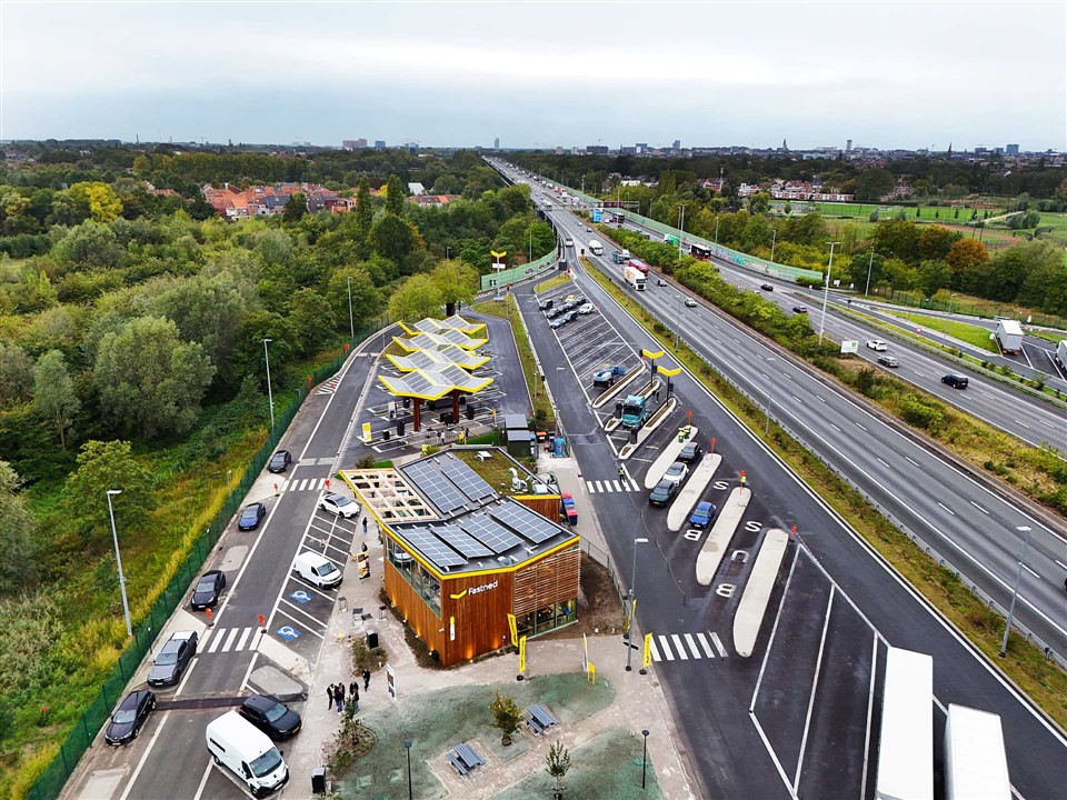 Langs de E17 tussen Gent en Antwerpen, bij Gentbrugge, veranderde Fastned twee kale parkeerplaatsen in twee verzorgingsplaatsen voor bestuurders van elektrische voertuigen. Beide locaties bieden alle faciliteiten die we kennen van tankstations langs de snelweg, alleen kom je hier voor elektriciteit in plaats van benzine of diesel. Helemaal nieuw is dat er op beide locaties naast zestien snelladers voor personenauto’s ook vier snelladers voor elektrische vrachtwagens zijn.